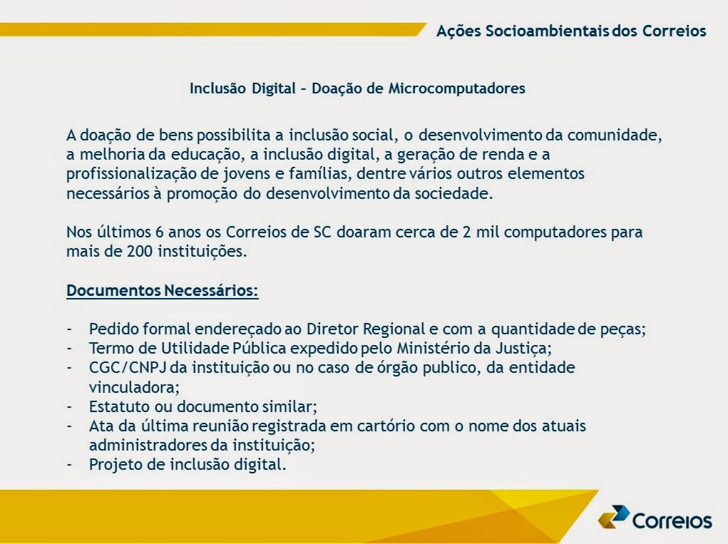 O Correios, patrocinador oficial do “Projeto GRIOT 2014 – Contando histórias...” pratica ações que contribuem para a sustentabilidade e desenvolvimento da consciência socioambiental. Conheça um pouco mais: